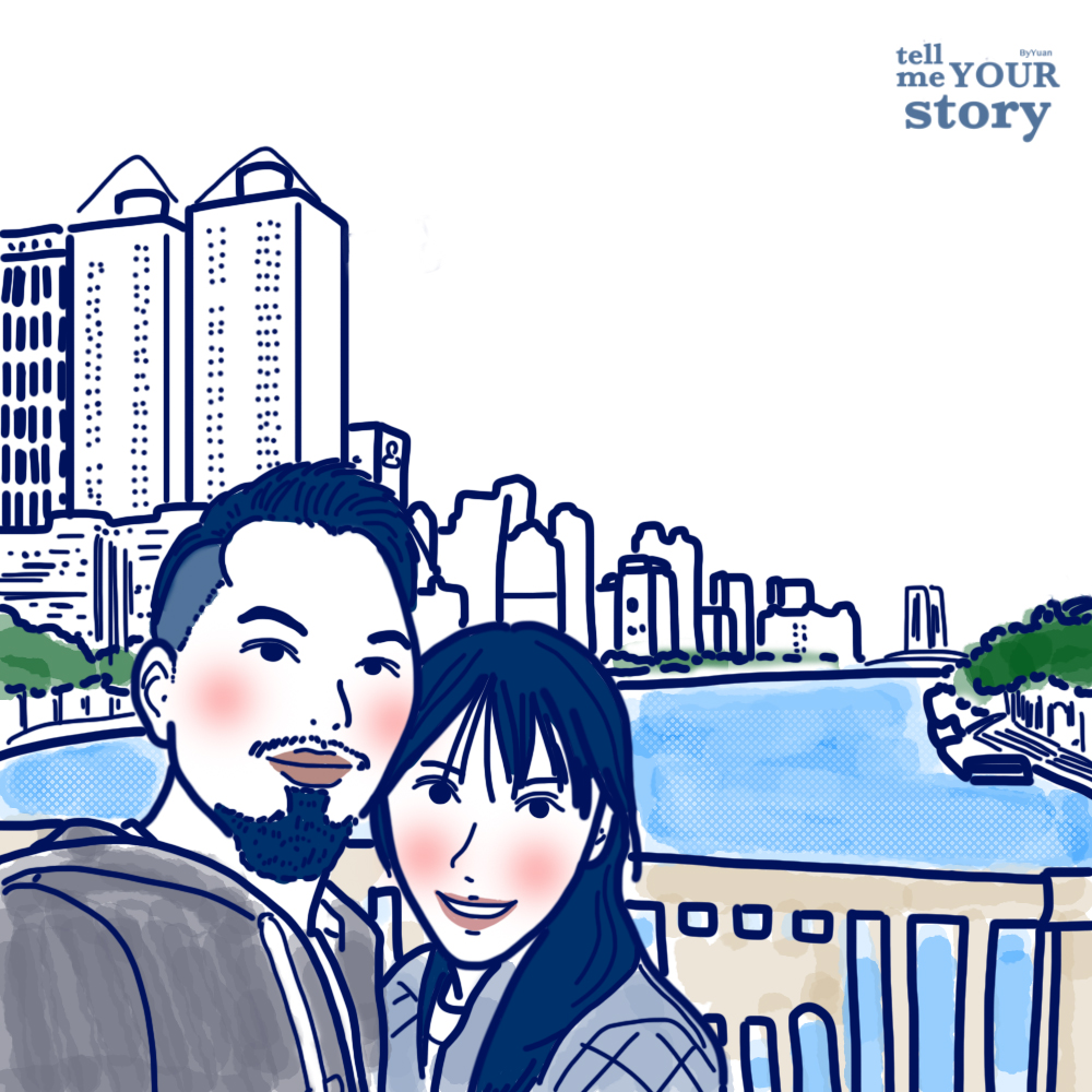 照片中原本兩人合照的背景是在大學內,但Mr.J給我一串他們回憶的地點,我從中間挑選了愛河!找了張愛河的照片,做了合圖。最美好的回憶是兩人都微笑著!而為什麼是愛河,愛河聽起來就是充滿愛啊(自己覺得)!河流象徵著源源不絕,這是我送出的祝福~