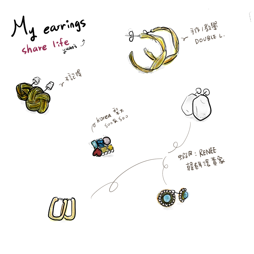 還好我大部分都是貼耳的耳環,現在戴也還好~如果是垂墜款~有孩子真的會很麻煩(常常被扯頭髮很有感)