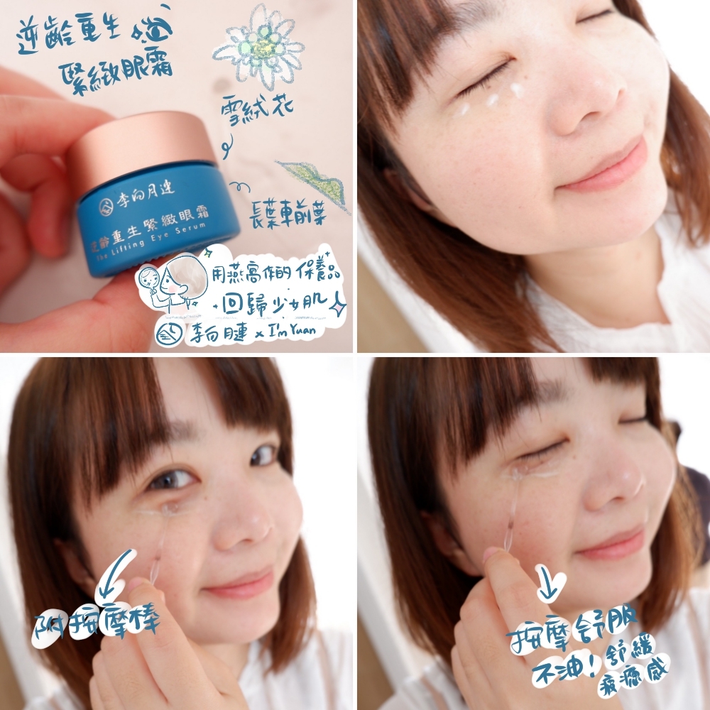 用眼霜,我最怕的就是太滋潤長小細紋和肉芽,還好這款我用起來沒有這些問題,我之前一直眼下有些小細紋,我用的兩週其中一天特別用附贈的小小按摩棒,抹上按摩,哇!!!!真的太舒服了,眼睛下方的肌肉那個疲憊,舒緩很多,隔天發現眼週周亮很多,眼睛疲憊感真的少很多!