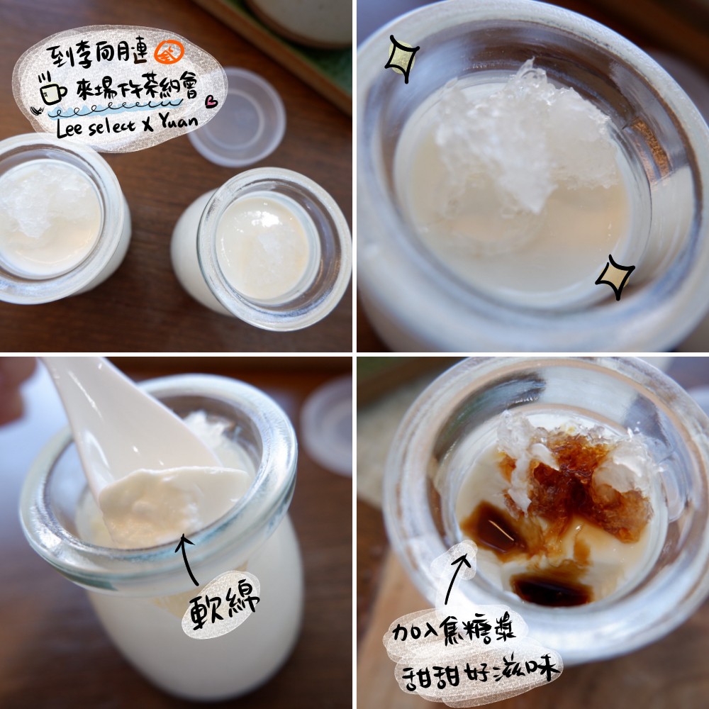 我分別跟男子體驗,原味(鮮奶)和豆漿,鮮奶酪吃起來很軟嫩順口,上面鋪上燕窩,單吃就很香好吃,豆漿口味的口感一樣,但豆子味道很重(吃得出用料很足阿),如果討厭豆漿的人就不要點喔。