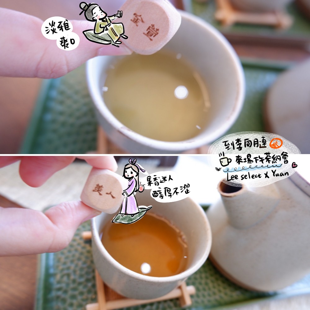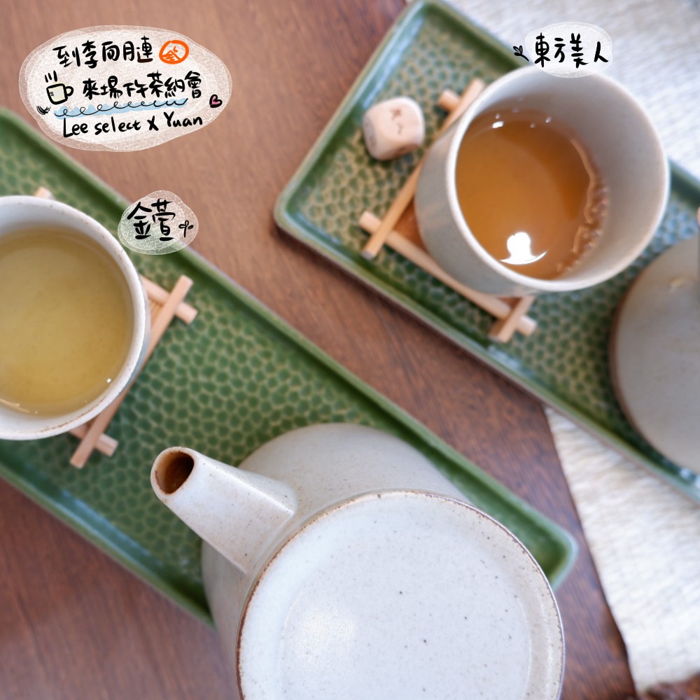 在這中途,送上我們選的茶,分別是東方美人和清香阿里山金萱烏龍茶。這兩款都是門市人員推薦,拿來搭配甜點很剛好。
