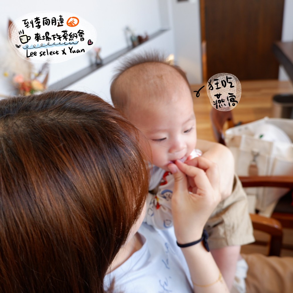 因為我們在吃,小元寶一直看,我”只好”挑了無調味、乾淨單純的燕窩給他,往他嘴裡塞,一口接一口呢(寶寶建議6個月以上可以食用,每個寶寶吞嚥/試敏情況不同,請自行斟酌)!然後當天小元寶,真的爽翻,吃完整個狂睡。我想他也得到滿足吧(沒有給他很多喔,大概就是司康旁邊的燕窩分他)。
