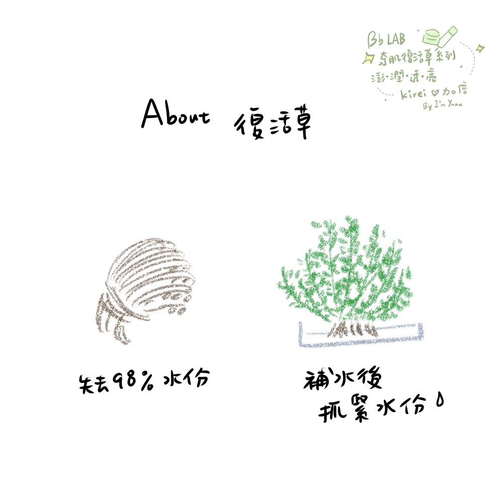 復活草很神奇,在極端乾旱的狀況之下會緊緊縮成球狀,牢牢鎖住體內珍貴的水分!以這樣的狀態生存數十年,但一遇到水,復活草體內含有的糖基海藻糖就會發揮強大的鎖水保濕能力,緊緊抓住每一滴水!再將水份導入體內每個細胞中~恢復生機盎然!所以加在保養品超棒超棒!!