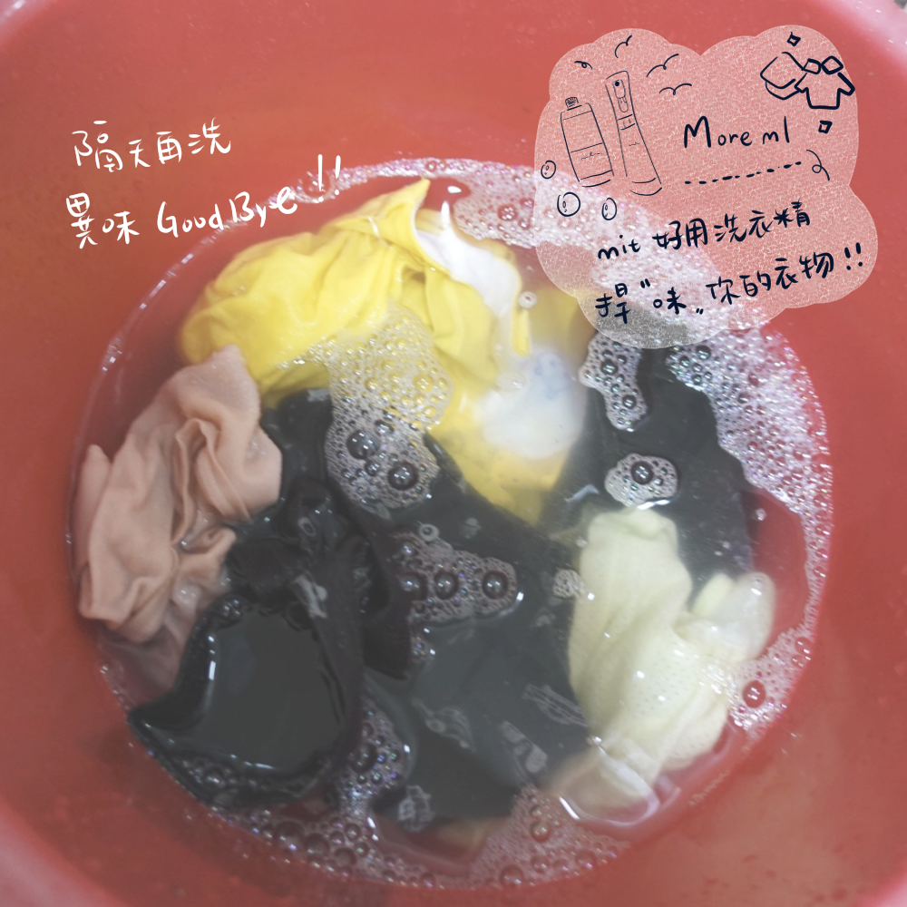 這次看到more ml的洗衣精,我真的很興奮(搓手),因為我看男子那些臭臭的衣服不順眼很久了!畢竟擁抱的時候都會聞到臭臭悶悶的味道,真的不是很開心!我當然也有用過別牌,但有時候某些牌子主打不同,功能性不同,我一直都在找可以去除異味的洗衣精~不要讓鼻子活受罪~