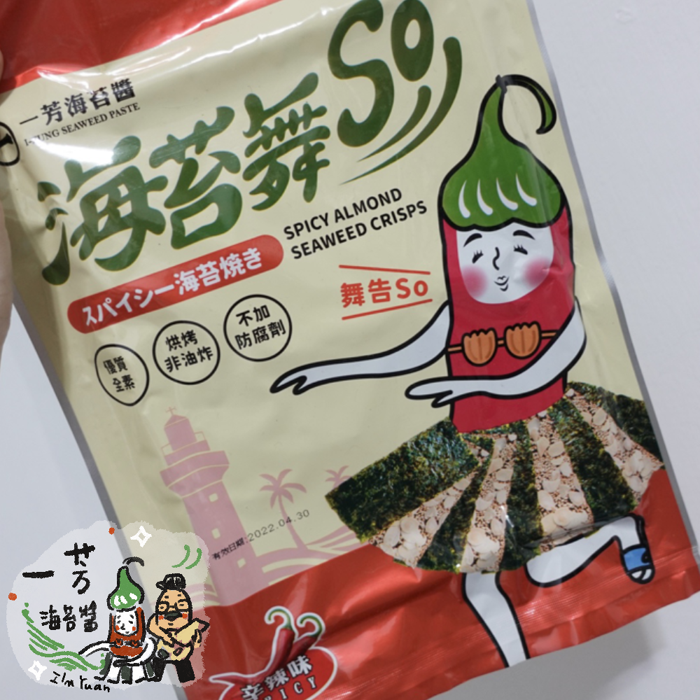 我覺得 海苔舞SO 有別於一般海苔酥,海苔每一面是兩層啊!!!真的舞(有)酥,辣味真的很唰嘴,男子說好吃,完全是無添加防腐劑的健康零食,海苔有滿滿的營養再加上堅果,圓媽也超愛吃的,一吃還問我說「這應該很貴吧,用料很實在」~ 圓媽嘴很刁,我看他一下就吃完了!