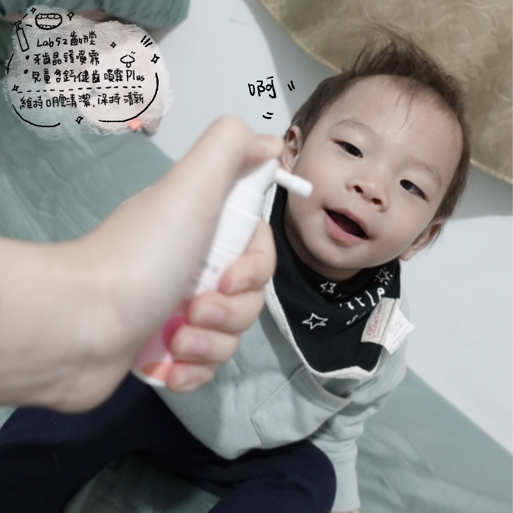 現在我都會放在床頭,小元寶看到就會拿給我要我幫他噴!或是睡覺前喝完奶我也會給小元寶噴一下,稍微維護一下!(當然我也詢問過醫生,健齒噴霧是輔助品,還是建議要配合正確刷牙喔!)