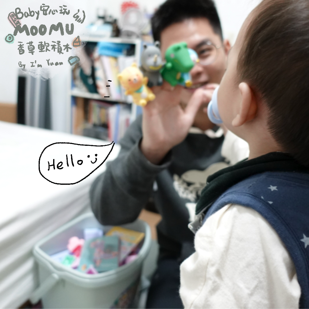 玩偶的部分,我會跟小元寶玩辦家家的感覺,用玩偶跟他對話,最近男子會將玩偶套在手上跟小元寶打招呼!而小元寶也有樣學樣~很有趣♥️