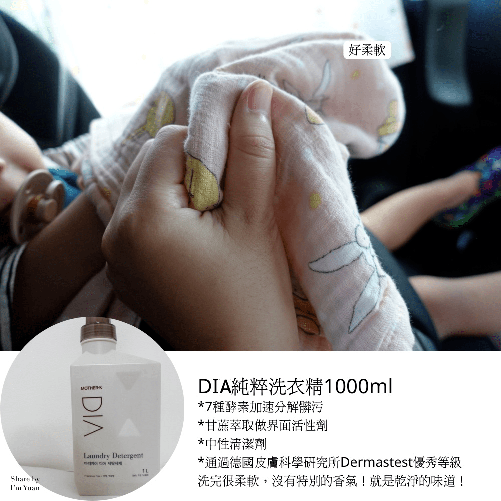 我個人以前非常不愛洗衣服和打掃,有了孩子以後我很常在洗衣服、整理環境(雖然還是很亂,哎唷不要這樣平常上班太累)!最近用到Mother-K的DIA純粹家事系列,真的好用❤️