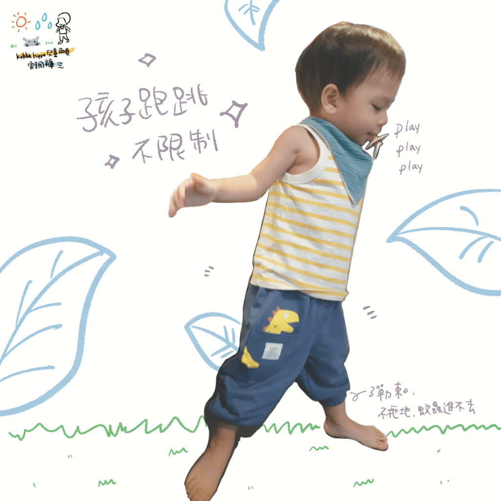 小元寶體溫很高,但有時候還是會怕出去玩有蚊子、太曬或是出去玩進冷氣房太冷等等。我會備著空調褲!雖然是長褲但是是棉麻材質!比較不會那麼熱~輕薄好收、褲管也有束口,比較不用擔心小童在玩耍拖地或是有蚊子從褲口跑進去!