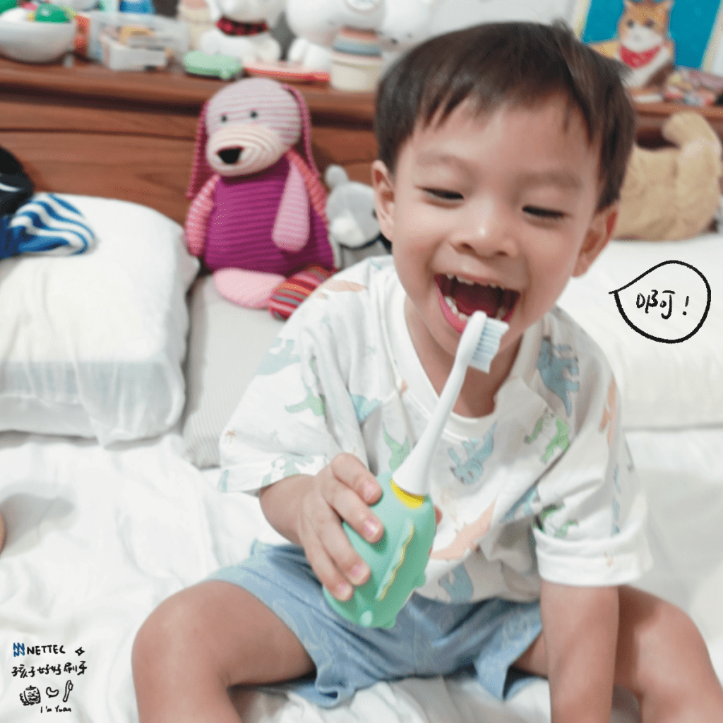 一直在幫小元寶找尋電動牙刷,馬上就被nettec可愛的 #U型恐龍造型兒童電動牙刷 吸引!