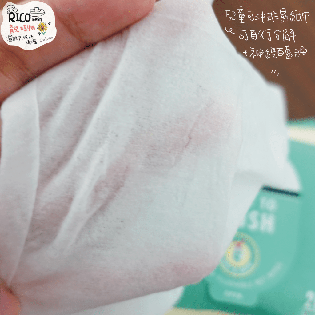 近年來真的越來越流行可沖式濕紙巾,可沖式代表可以自行分解!而含有神經醯胺可以同時滋潤肌膚!訓練寶寶如廁很棒,畢竟孩子剛開始使用衛生紙,真的很容易刮屁股擦不乾淨,用這個真的讓人安心很多。