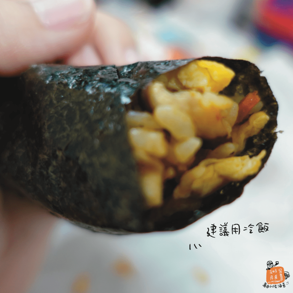 這款海苔真的沒調味,就像你在外面吃三角飯糰那種海苔,但我覺得厚度偏厚一點,我自己試著做泡菜炒飯包三角飯糰,覺得很不錯欸~後續看高麗菜媽媽分享包這個飯糰建議用冷飯會比較好包喔~