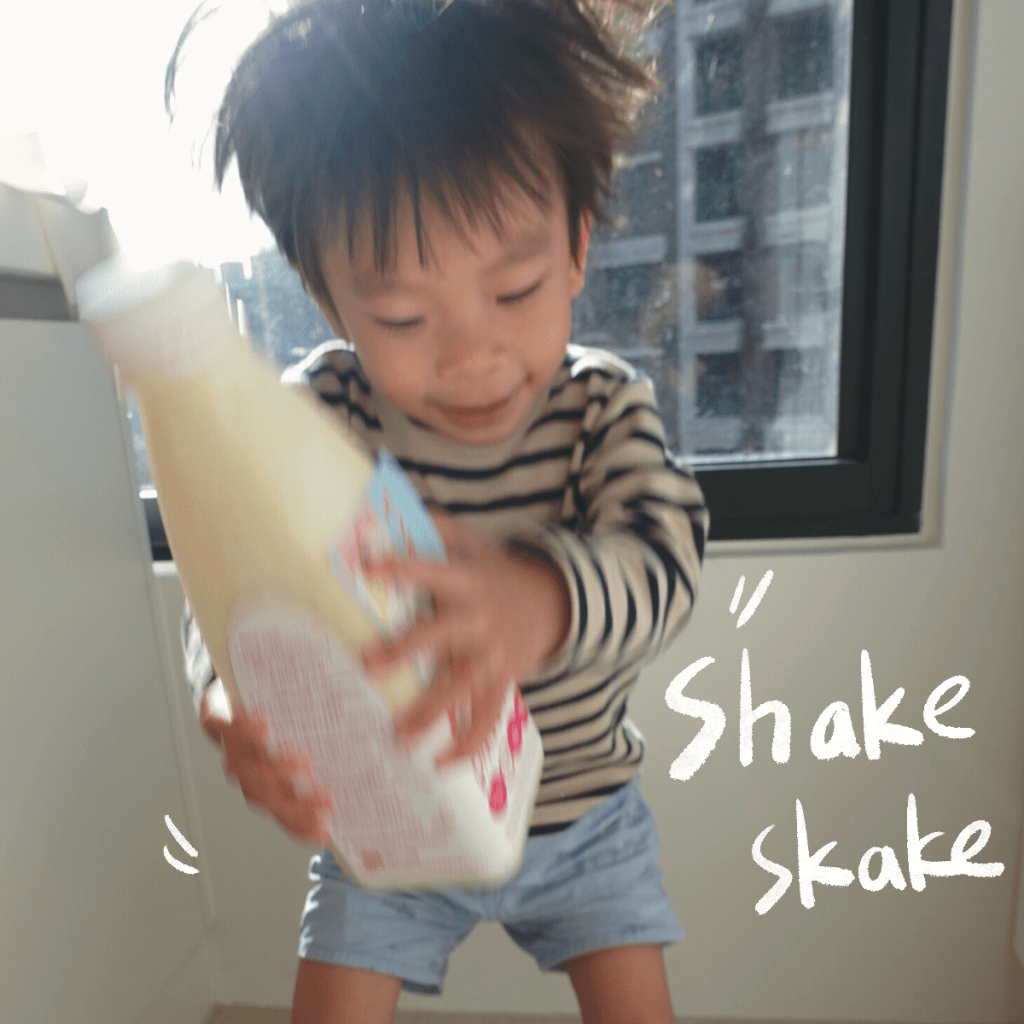 但這次看到這一款搖搖鬆餅粉,真的覺得很方便,因為有時候真的一次吃不完鬆餅粉~希望分很多天來吃!這款鬆餅粉已經將鬆餅粉調和好放在罐子內,加入牛奶搖一搖就可以用了,小元寶也能一起參與鬆餅的製作她超開心!用不完可以放在冰箱冷藏(2-3天內用完)。