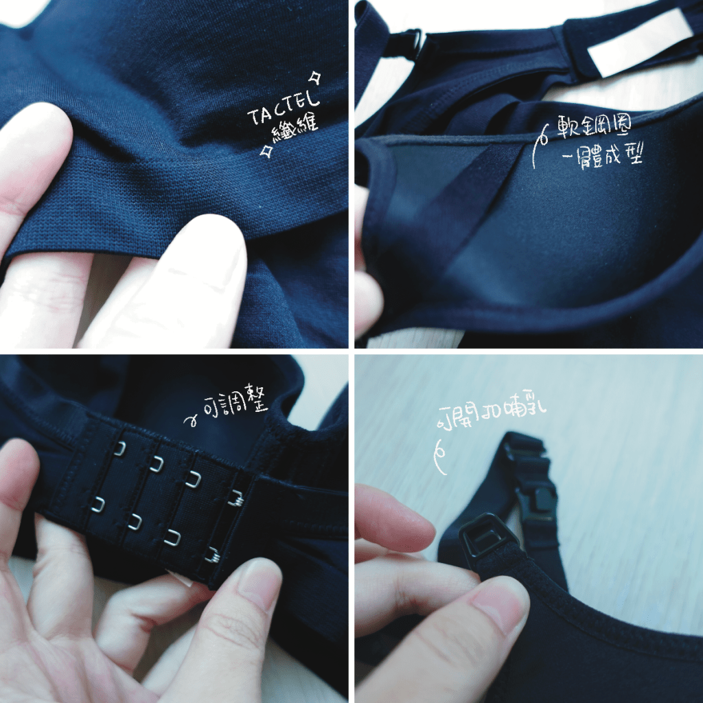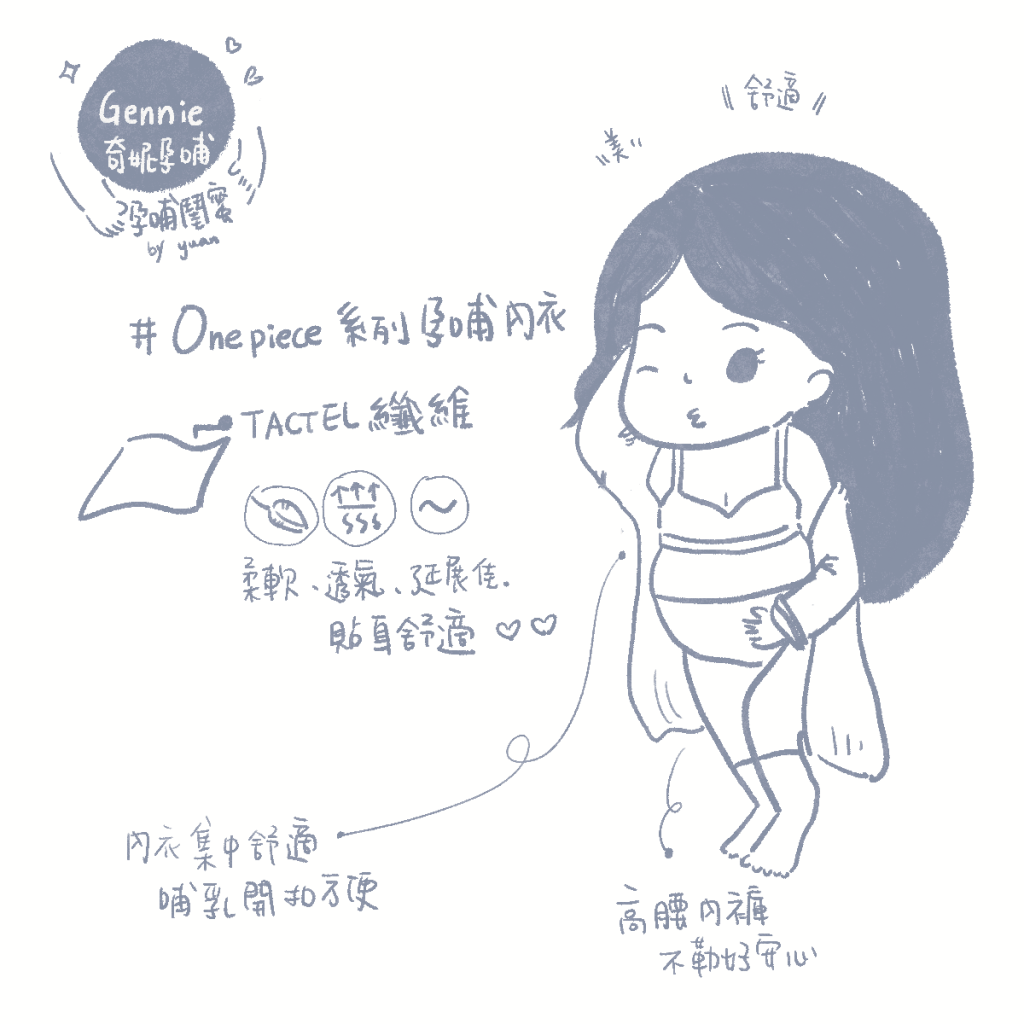 而One piece系列我覺得最特別的就是TACTEL纖維,這個材質觸感很柔軟、透氣性好、清潔簡易、延展性很好。穿著起來很貼身舒適!拿來做孕哺內衣最棒了(成為孕婦和哺乳肌膚真的蠻容易敏感,所以這真的很重要!!