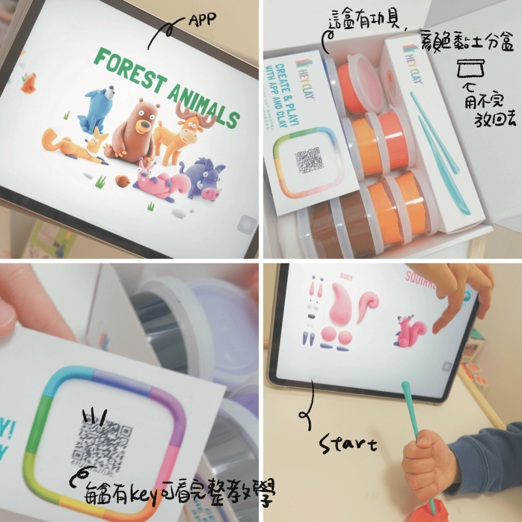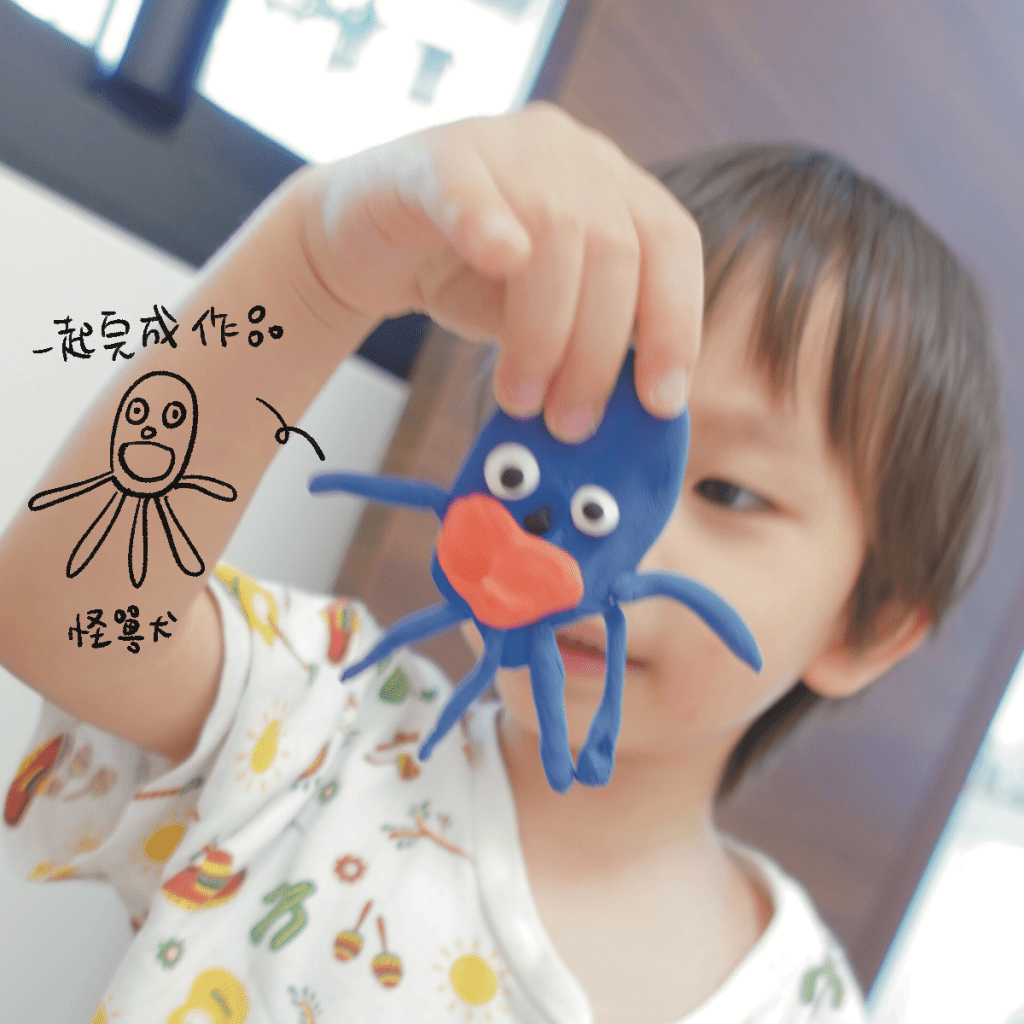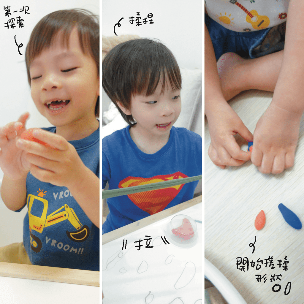 以上,玩了好一陣子,重新調整我自己的陪玩方式,慢慢教他,再觀察他的手部肌肉能力和理解發現他真的進步,才來跟大家分享,不會用髒手的黏土真的很可以買起來玩~激發孩子的各種可能!