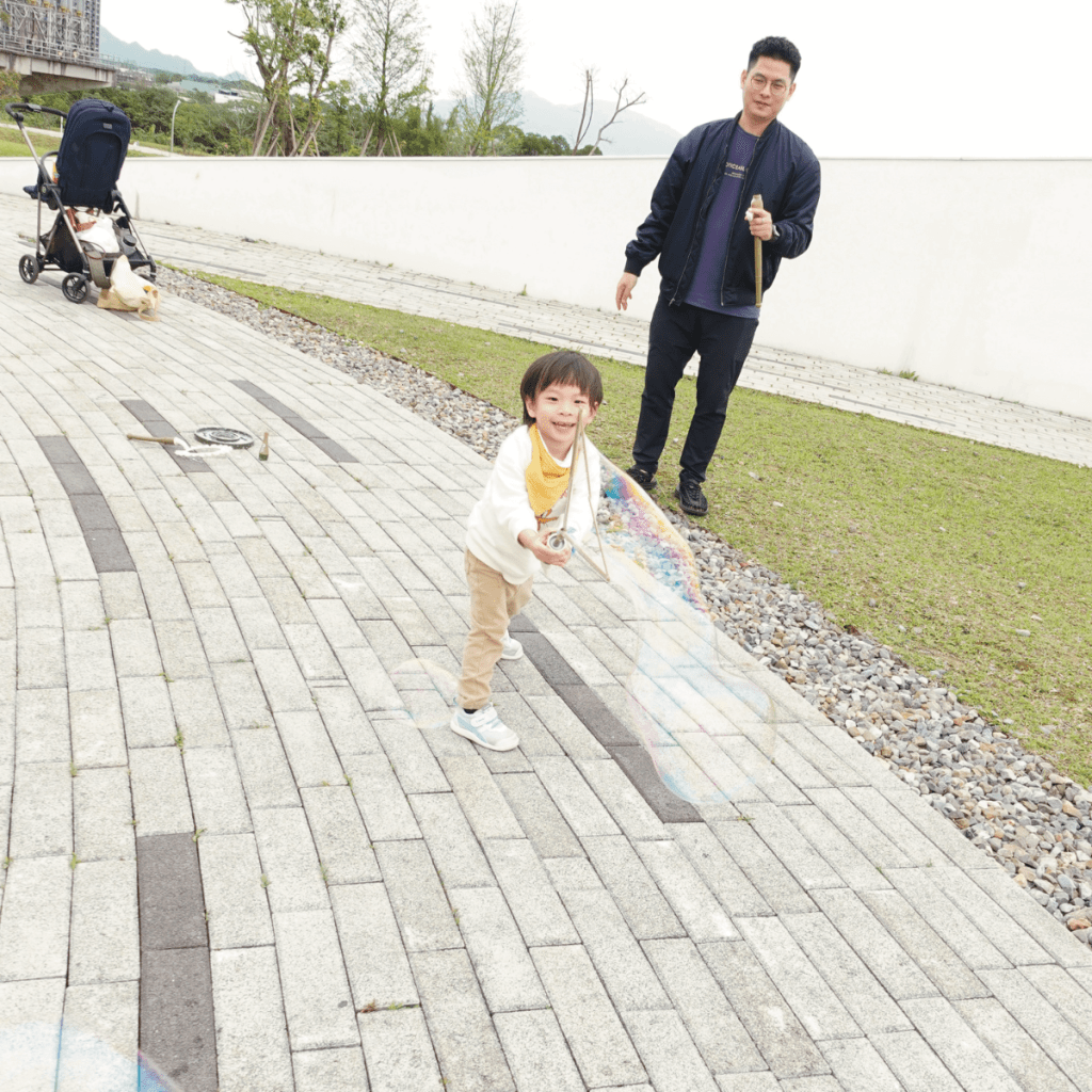 我又重拾安可堡起來了~但這次是絕美新色~屬於莫蘭迪大地色系,帶著小元寶一起玩起魔幻泡泡!而這次他長大非常多,教他一下他就會了,而且每一個都很喜歡,很愛嘗試!雖然他也有泡泡槍,但這種靠自己要揮一揮、吹,讓他更有成就感~最近一直吵著要出門玩泡泡,看他邊跑邊揮,簡單創造出泡泡後的笑容,媽媽知道我買對了~