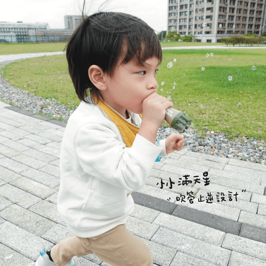 有沾水盤和吹管,而吹管有設計止逆裝置,不擔心孩子吸到泡泡水~輕輕一吹,就可以吹出數不清的夢幻泡泡!這一款特色是泡泡不會沾黏,室內室外都適合玩