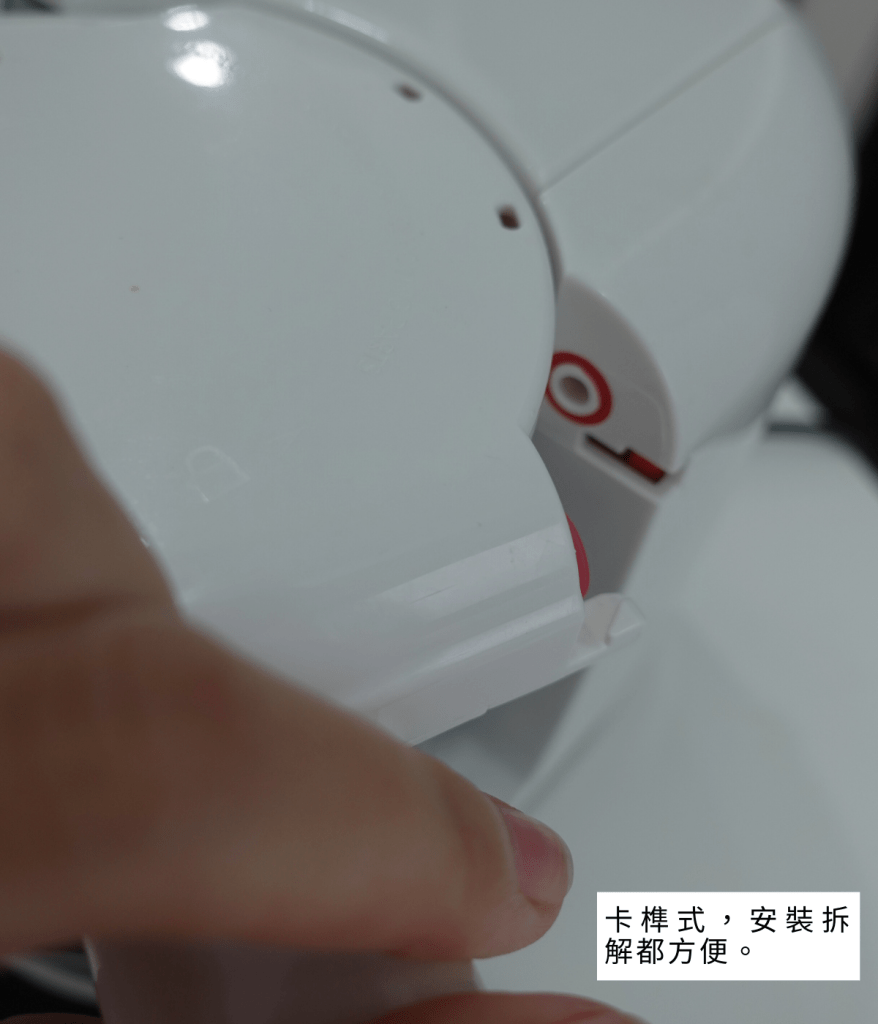再來是外型很簡單,看起來按鍵也不複雜,配件(攪拌盆、傳動軸、刀片與水箱),而底部還做了小吸盤,不怕打翻!因為第一次使用稍稍看一下說明書,其實很快就會使用,而料理機很多部分都是做卡榫式,只要稍微轉一下就很方便安裝或是解開即可。