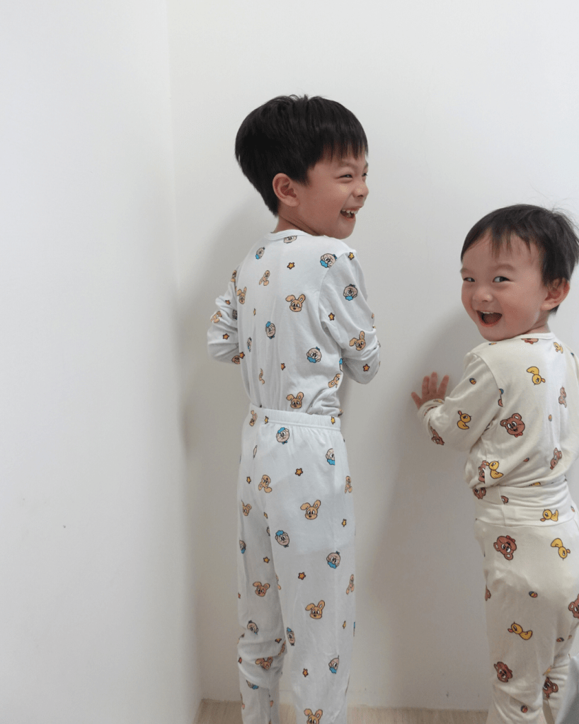 我們家雙寶,自從穿過居家服就回不去了~因為兩個孩子太會流汗,如果穿不透氣舒服的衣服睡覺,很慘~你會看到床上非常濕!