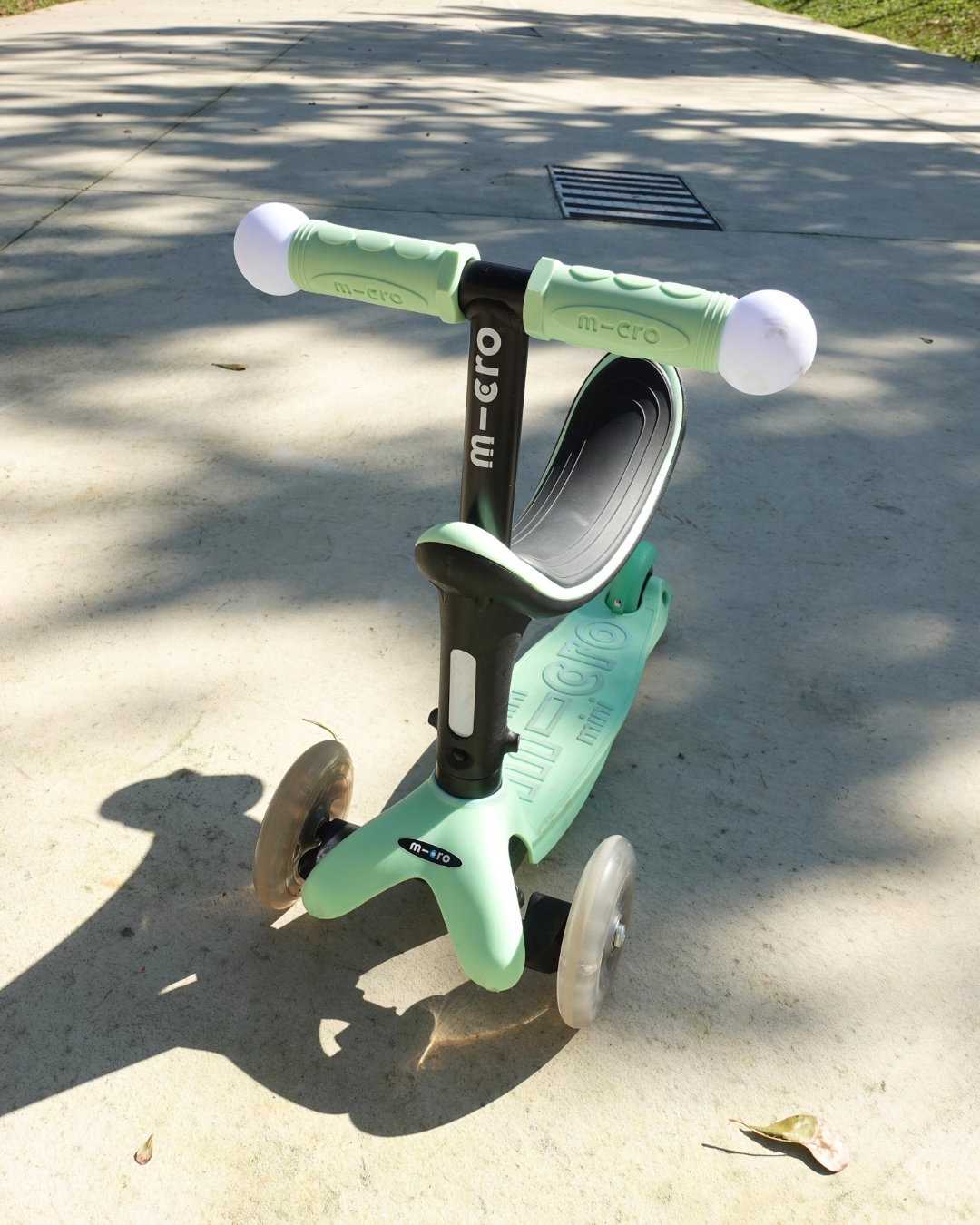 我覺得會發光這點真的很棒,不只輪子,握把也有裝載觸碰感應器,騎乘時兩側的變色球也會跟著發光,因為偶爾會帶孩子在傍晚時玩滑板車,有時候視線不好,總是擔心看不到他們,這時候滑板車自帶亮光,至少讓我們知道孩子大概的位子!超級棒~